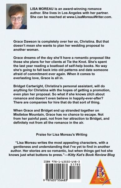 Grace Dawson is completely over her ex, Christina. But that doesn't mean she wants to plan her wedding proposal to another woman. Grace dreams of the day she'll have a romantic proposal like those she plans for her clients at Tie the Knot. She's spent the last year reading a boatload of self-help books. No way she's going to fall back into old patterns and date someone afraid of commitment ever again. When it comes to everlasting love, Grace is all in. Bridget Cartwright, Christina's personal assistant, will do anything for Christina with the hopes of getting a promotion, even plan her proposal. So what if she knows zilch about romance and doesn't even believe in happily-ever-after? There are companies for hire that do that sort of thing. When Grace and Bridget end up stranded together on Mistletoe Mountain, Grace has no chance to escape. Not from her painful past, not from her attraction to Bridget, and definitely not from all the romance in the air.