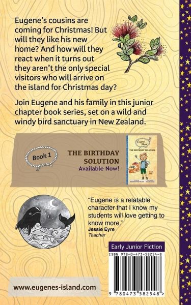 Eugene's cousins are coming for Christmas! But will they like his new home? And how will they react when it turns out they aren't the only special visitors who will arrive on the island for Christmas day? Join Eugene and his family in this children's early chapter book series set on a wild and windy bird sanctuary in New Zealand. Written by Elizabeth Kirkby-McLeod and illustrated by Anna McKessar, suits 5-8 year old independent readers or to read aloud to younger children.
