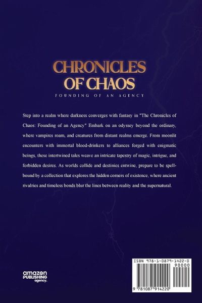 Step into a realm where darkness converges with fantasy in "The Chronicles of Chaos: Founding of an Agency" Embark on an odyssey beyond the ordinary, where vampires roam, and creatures from distant realms emerge. From moonlit encounters with immortal blood-drinkers to alliances forged with enigmatic beings, these intertwined tales weave an intricate tapestry of magic, intrigue, and forbidden desires. As worlds collide and destinies entwine, prepare to be spellbound by a collection that explores the hidden corners of existence, where ancient rivalries and timeless bonds blur the lines between reality and the supernatural.