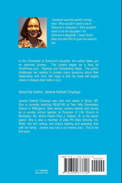 The Chronicles of Solomon's Daughter is a compilation of essays about faith in God.