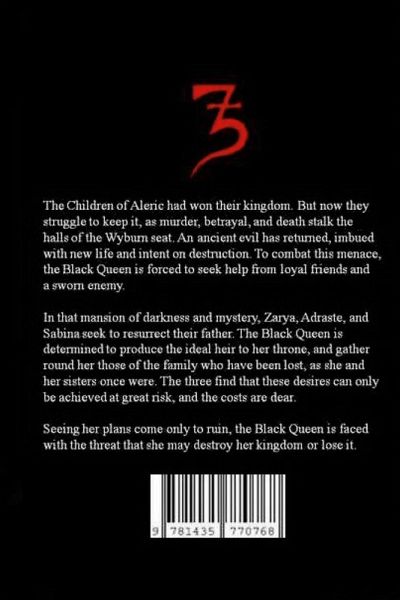 The Chronicles of the Black Queen: Book II The Children of Aleric had won their kingdom. But now they struggle to keep it, as murder, betrayal, and death stalk the halls of the Wyburn seat. An ancient evil has returned, imbued with new life and intent on destruction. To combat this menace, the Black Queen is forced to seek help from loyal friends and a sworn enemy. In that mansion of darkness and mystery, Zarya, Adraste, and Sabina seek to resurrect their father. The Black Queen is determined to produce the ideal heir to her throne, and gather round her those of the family who have been lost, as she and her sisters once were. The three find that these desires can only be achieved at great risk, and the costs are dear. Seeing her plans come only to ruin, the Black Queen is faced with the threat that she may destroy her kingdom or lose it.