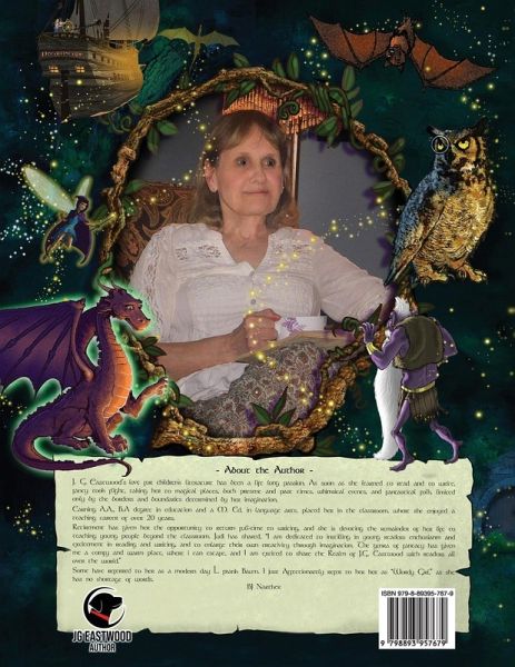 J. G. Eastwood's love for children's literature has been a lifelong passion. As soon as she learned to read and to write, fancy cook flight, taking her co magical places, both present and past times, whimsical events, and fantastical folk, limited only by the borders and boundaries determined by her imagination. Earning AA, BA degrees in education and a M. Ed. in language arts, placed her in the classroom, where she enjoyed a teaching career of over 20 years. Retirement has given her the opportunity to recur full-time to writing, and she is devoting the remainder of her life to teaching young people beyond the classroom. Judi has shared, "I am dedicated to instilling in young readers enthusiasm and excitement in reading and writing, and to enlarge their own creativity through imagination. The genre of fantasy has given me a comfy and warm place, where I can escape, and I am excited to share The Realm of JG. Eastwood which readers all over the world." Some have Referred to her as a modern day L. Frank Baum. I just affectionately Refer to her as "Wordy Girl" as she has no shortage of words. BJ Nartcker.