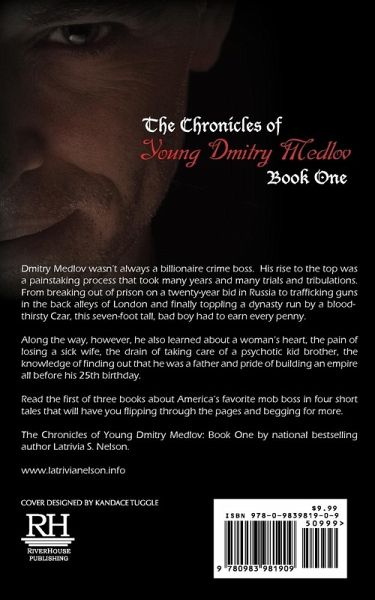 The Chronicles of Young Dmitry Medlov: Book One If you've been waiting to buy all the volumes of Book One of The Chronicles of Young Dmitry Medlov: Volumes 1-4, the time has now arrived. By popular demand, Latrivia S. Nelson is proud to announce a compilation of the first four of the twelve volumes from the Medlov Crime Family Short Stories Series. Dmitry Medlov wasn't always a billionaire crime boss. His rise to the top was a painstaking process that took many years and many trials and tribulations. From breaking out of prison on a twenty-year bid in Russia to trafficking guns in the back alleys of London and finally toppling a dynasty run by a blood-thirsty Czar, this seven-foot tall, bad boy had to earn every penny. Along the way, however, he also learned about a woman's heart, the pain of losing a sick wife, the drain of taking care of a psychotic kid brother, the knowledge of finding out that he was a father and pride of building an empire all before his 25th birthday. Read about America's favorite mob boss in four short tales that will have you flipping through the pages and begging for more. The Chronicles of Young Dmitry Medlov: Book One by national bestselling author Latrivia S. Nelson. www.latrivianelson.info