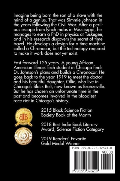 RIDE ALONG ON AN URBAN ADVENTURE IN TIME Imagine being born the son of a slave with the mind of a genius. That was Simmie Johnson in the years following the Civil War. After a perilous escape from lynch mobs in Mississippi, he manages to earn a PhD in physics at Tuskegee, and in his research discovers the secret of time travel. He develops a design for a time machine called a Chronocar, but the technology required to make it work does not yet exist. Fast forward 125 years. A young African American Illinois Tech student in Chicago finds Dr. Johnson's plans and builds a Chronocar. He goes back to the year 1919 to meet the doctor and his beautiful daughter, Ollie, who live in Chicago's Black Belt, now known as Bronzeville. But he has chosen an unfortunate time in the past and becomes involved in the bloodiest race riot in Chicago's history. Black Science Fiction Society Book of the Month 2018 Best Indie Book Literary Award, Science Fiction Category