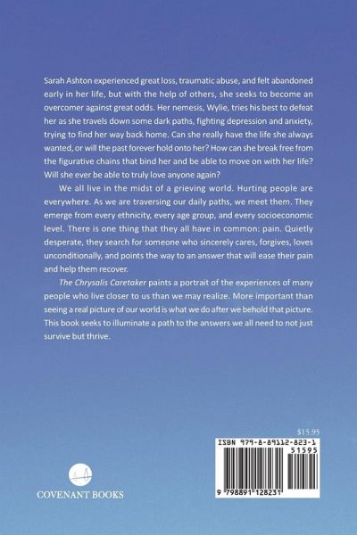 Sarah Ashton experienced great loss and tragedy early in her life, but with the help of her family, friends, doctor, and Caretaker, she seeks to become an overcomer against great odds. Her nemesis, Wylie, tries his best to defeat her as she travels down some dark paths. Can she really have the life she always wanted, or will the past forever hold onto to her? An unfortunate reality of our day is that tragedies are all too common. The post-traumatic aftermath does not have to be all tragic, though. Mountaintop experiences are there intermixed between the difficult valleys. We all live in the midst of a hurting world. Hurting people are everywhere. As we are traversing our daily paths, we meet them. They emerge from every ethnicity, every age group, and every socioeconomic level. There is one thing that they all have in common: pain. Quietly desperate, they search for someone to care, to understand, to love unconditionally, and to point the way to an answer for their dilemma to ease their pain. The Chrysalis Caretaker paints a portrait of the experiences of many people who live closer to us than we may realize. More important than seeing a real picture of our world is what we do after we behold that picture. This book seeks to illuminate a path to the answers we all need.
