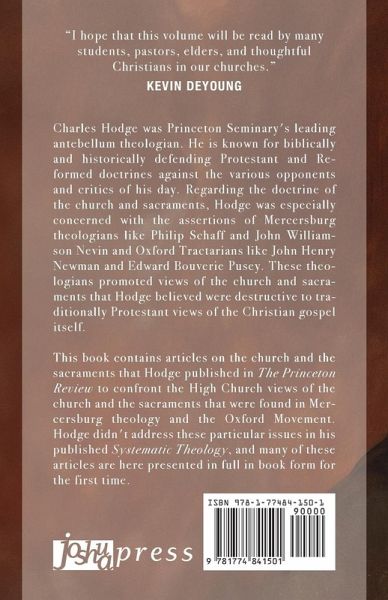 Charles Hodge was Princeton Seminary's leading antebellum theologian. He is known for biblically and historically defending Protestant and Reformed doctrines against the various opponents and critics of his day. Regarding the doctrine of the church and sacraments, Hodge was especially concerned with the assertions of Mercersburg theologians like Philip Schaff and John Williamson Nevin and Oxford Tractarians like John Henry Newman and Edward Bouverie Pusey. These theologians promoted views of the church and sacraments that Hodge believed were destructive to traditionally Protestant views of the Christian gospel itself. This book contains articles on the church and the sacraments that Hodge published in The Princeton Review to confront the High Church views of the church and the sacraments that were found in Mercersburg theology and the Oxford Movement. Hodge didn't address these particular issues in his published Systematic Theology, and many of these articles are here presented in full in book form for the first time.