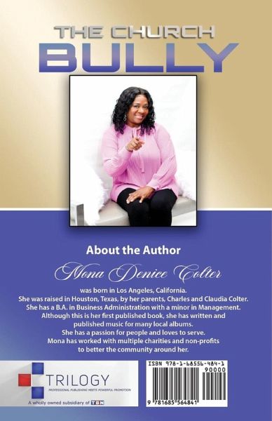 This book is dedicated to everyone who has ever felt that they were not treated fairly within the church. Perhaps you felt you had no voice to express the hurt or disappointment that was caused by someone who was unaware of their bully status. Well, look up because help is on the way as readers read the pages within this book.