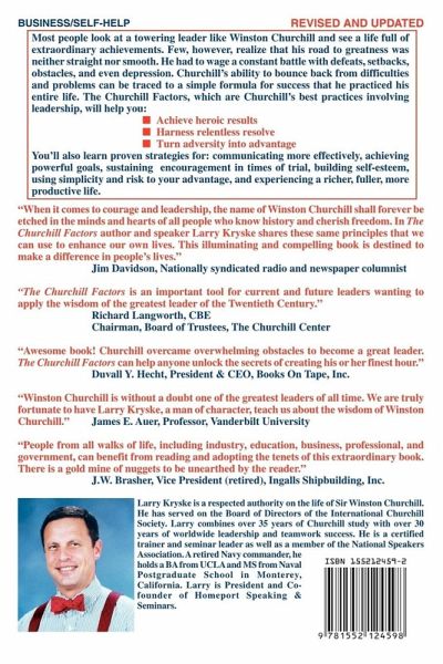 Larry Kryske is a respected authority on the life of Sir Winston Churchill. He has served on the Board of Directors of the International Churchill Society. Larry combines over thirty-five years of Churchill study with over thirty years of worldwide leadership and teamwork success. He is a certified trainer and seminar leader as well as a member of the National Speakers Association. A retired U.S. Navy commander, he holds a BA from the University of California at Los Angeles (UCLA) and a MS from the Naval Postgraduate School in Monterey, California. Larry is President and Co-founder of Homeport Training & Development. C