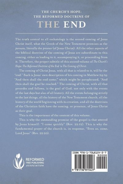 The truth central to all eschatology is the second coming of Jesus Christ itself, what the Greek of the New Testament promises as the parousia, literally the presence (of Jesus Christ). All the other aspects of the biblical doctrine of the coming of Jesus are subordinate to this coming, either as leading to it, accompanying it, or proceeding from it. Therefore, the proper subtitle of this second volume of The Church's Hope: The Reformed Doctrine of the End is The Coming of Christ. The coming of Christ Jesus, with all that is related to it, will be the "end." Such is Jesus' own description of his coming in Matthew 24:14: "And then shall the end come;" which might be paraphrased: "And then shall the goal be reached." The coming of Christ, with all that precedes and follows, is the goal of God, not only with the events of the last days but also of all history. All the events belonging strictly to the last things, all the history of the New Testament church, all the history of the world beginning with its creation, and all the doctrines of the Christian faith have the coming, or presence, of Jesus Christ as their goal. This is the importance of the content of this volume. This is why the outstanding promise of the gospel is that uttered by Jesus himself, "I come quickly" (Rev. 22:12). This is why the fundamental prayer of the church is, in response, "Even so, come, Lord Jesus" (Rev. 22:20).