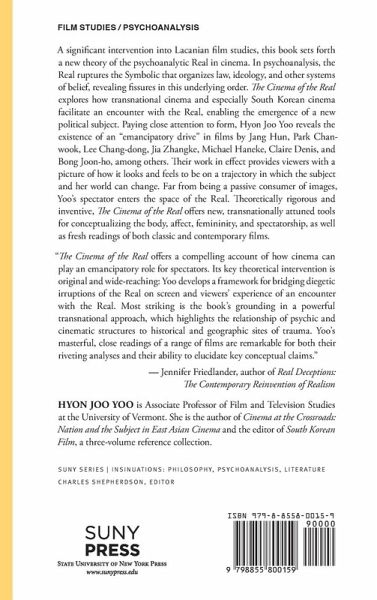 A significant intervention into Lacanian film studies, this book sets forth a new theory of the psychoanalytic Real in cinema. In psychoanalysis, the Real ruptures the Symbolic that organizes law, ideology, and other systems of belief, revealing fissures in this underlying order. The Cinema of the Real explores how transnational cinema and especially South Korean cinema facilitate an encounter with the Real, enabling the emergence of a new political subject. Paying close attention to form, Hyon Joo Yoo reveals the existence of an "emancipatory drive" in films by Jang Hun, Park Chan-wook, Lee Chang-dong, Jia Zhangke, Michael Haneke, Claire Denis, and Bong Joon-ho, among others. Their work in effect provides viewers with a picture of how it looks and feels to be on a trajectory in which the subject and her world can change. Far from being a passive consumer of images, Yoo's spectator enters the space of the Real. Theoretically rigorous and inventive, The Cinema of the Real offers new, transnationally attuned tools for conceptualizing the body, affect, femininity, and spectatorship, as well as fresh readings of both classic and contemporary films.