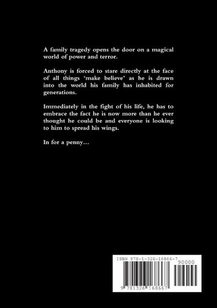 A family tragedy opens the door on a magical world of power and terror. Anthony is forced to stare directly at the face of all things 'make believe' as he is drawn into the world his family has inhabited for generations. Immediately in the fight of his life, he has to embrace the fact he is now more than he ever thought he could be and everyone is looking to him to spread his wings. In for a penny...