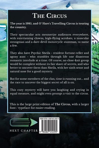 The year is 1985, and O' Hare's Travelling Circus is touring the country. Their spectacular acts mesmerize audiences everywhere, with entertaining clowns, high-flying acrobats, a muscular strongman and a dare-devil motorcycle stuntman, to name a few. They also have Psychic Sheila - resident fortune-teller and agony aunt - who stumbles through life one disastrous romantic interlude at a time. Of course, no close-knit group would be complete without its fair share of secrets, and who better to uncover them than Sheila, with her sixth sense and natural nose for a good mystery. But for some members of the clan, time is running out... and the race to uncover the biggest secret of all is on. This cozy mystery will have you laughing and crying in equal measure, and might even prompt a visit to the circus. This is the large print edition of The Circus, with a larger font / typeface for easier reading.
