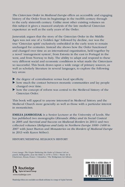 Jamroziak argues that the story of the Cistercian Order in the Middle Ages was not one of a 'Golden Age' followed by decline, nor was the true 'Cistercian spirit' exclusively embedded in the early texts to remain unchanged for centuries. Instead she shows how the Order functioned and changed over time as an international organisation, held together by a novel 'management system'; from Estonia in the east to Portugal in the west, and from Norway to Italy. The ability to adapt and respond to these very different social and economic conditions is what made the Cistercians so successful.