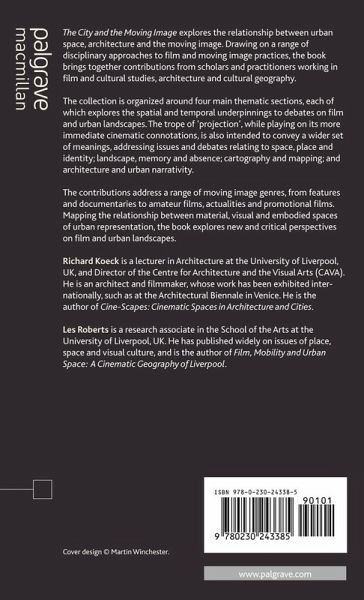 This edited collection explores the relationship between urban space, architecture and the moving image. Drawing on interdisciplinary approaches to film and moving image practices, the book explores the recent developments in research on film and urban landscapes, pointing towards new theoretical and methodological frameworks for discussion.