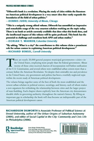 There are nearly 20,000 general-purpose municipal governments-cities-in the United States, employing more people than the federal government. About twenty of those cities received charters of incorporation well before ratification of the U.S. Constitution, and several others were established urban centers more than a century before the American Revolution. Yet despite their estimable size and prevalence in the United States, city government and politics has been a woefully neglected topic within the recent study of American political development. The volume brings together some of the best of both the most established and the newest urban scholars in political science, sociology, and history, each of whom makes a new argument for rethinking the relationship between cities and the larger project of state-building. Each chapter shows explicitly how the American city demonstrates durable shifts in governing authority throughout the nation's history. By filling an important gap in scholarship the book will thus become an indispensable part of the American political development canon, a crucial component of graduate and undergraduate courses in APD, urban politics, urban sociology, and urban history, and a key guide for future scholarship.