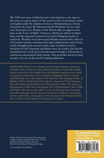 Stephanie Dalley is a member of the Oriental Institute, University of Oxford and an Honorary Senior Research Fellow of Somerville College. She has excavated in the Middle East and published cuneiform texts found in Iraq, Syria and Jordan, and in museums in Baghdad, Oxford, London and Edinburgh. She is the author of The Mystery of the Hanging Garden of Babylon (2013), which formed the basis for a successful TV documentary. Her other books include Myths from Mesopotamia (1986), The Legacy of Mesopotamia (1998), Mari and Karana: Two Old Babylonian Cities (1984) and Esther's Revenge at Susa (2007), some of which have been translated into other languages. She has lectured worldwide including at universities, schools and societies, and taught for three decades at the Oriental Institute. She is a Fellow of the Society of Antiquaries of London.