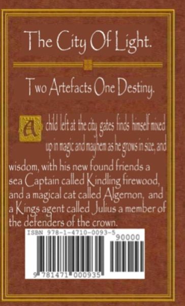 A child left at the city gate, and growing up in the city finds himself mixed up in magic and mayhem, as he grows in size and wisdom,with his new found friends a dwarf called Kindling firewood,a sea captain,his magical painted cat called,Algernon,and Julius Pond an Agent of the King, and a member of the defenders of the crown.