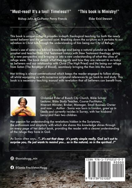 This book is unique in that it provides in depth theological teaching for both the newly saved believer and the seasoned saint. Breaking down the Scripture as it pertains to our salvation in Christ but through the understanding of Him being our City of Refuge. Sonia's use of extensive Biblical knowledge and being a natural pluralist as both prophet and teacher links Old Testament history with New Testament theology, giving us a new perspective and bringing is into a new understanding of what the cities of refuge were. The book details what they signify and how they are relevant to us today as believers and our relationship with Christ (The High Priest) and He being our refuge from Satan (The Revenger of blood), seamlessly bring the then into the now! Her writing is almost conversational which keeps the reader engaged to follow along, all whilst equipping us with numerous scriptural references to go back to and study, This book is a necessary teaching manual with revelation that all believers can benefit from.
