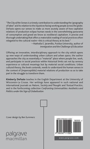 "The City of Senses is a timely contribution to understanding the 'geography of labor' and its relation to the injustices facing working people across the globe. DeFazio opens up our senses - to become more acutely aware - of how capitalist relations of production eclipse human needs in the overwhelming panorama of consumption and greed we know as neoliberal capitalism. A precise and thorough undertaking that offers a materialist reading of social practices often relegated to the cultural realm, this is critical theory at its best." - Nathalia E. Jaramillo, Assistant Professor, Educational Studies and Cultural Foundations, Purdue University