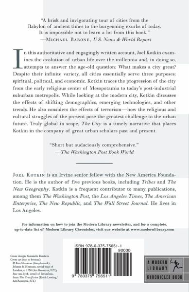 If humankind can be said to have a single greatest creation, it would be those places that represent the most eloquent expression of our species's ingenuity, beliefs, and ideals: the city. In this authoritative and engagingly written account, the acclaimed urbanist and bestselling author examines the evolution of urban life over the millennia and, in doing so, attempts to answer the age-old question: What makes a city great? Despite their infinite variety, all cities essentially serve three purposes: spiritual, political, and economic. Kotkin follows the progression of the city from the early religious centers of Mesopotamia, the Indus Valley, and China to the imperial centers of the Classical era, through the rise of the Islamic city and the European commercial capitals, ending with today's post-industrial suburban metropolis. Despite widespread optimistic claims that cities are "back in style,” Kotkin warns that whatever their form, cities can thrive only if they remain sacred, safe, and busy-and this is true for both the increasingly urbanized developing world and the often self-possessed "global cities” of the West and East Asia. Looking at cities in the twenty-first century, Kotkin discusses the effects of developments such as shifting demographics and emerging technologies. He also considers the effects of terrorism-how the religious and cultural struggles of the present pose the greatest challenge to the urban future. Truly global in scope, The City is a timely narrative that will place Kotkin in the company of Lewis Mumford, Jane Jacobs, and other preeminent urban scholars.