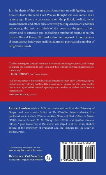 It is the thesis of this volume that Americans are still fighting, sometimes violently, the same Civil War we thought was over more than a century ago. If you are concerned about the political, medical, racial, environmental, and other crises currently testing Americans and their democracy, the first two thirds of this book are designed to both inform and to entertain you, including a number of poems about the divisive Donald Trump. The final section is composed of more personal poems about family personalities, fantasies, poetry, and a number of delightful animals.