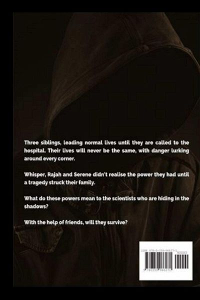 Three siblings, once leading normal lives until they are called to the hospital. Now, their lives will never be the same, with danger lurking around every corner. Whisper, Rajah and Serene Clandestine didn't even realize the power they had until a tragedy struck their family. What do these powers mean to the scientists who are hiding in the shadows? With the help of friends, will they survive?