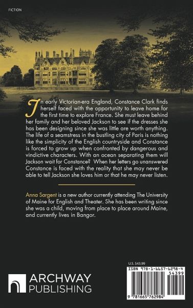 In early Victorian-era England, Constance Clark finds herself faced with the opportunity to leave home for the first time to explore France. She must leave behind her family and her beloved Jackson to see if the dresses she has been designing since she was little are worth anything. The life of a seamstress in the bustling city of Paris is nothing like the simplicity of the English countryside and Constance is forced to grow up when confronted by dangerous and vindictive characters. With an ocean separating them will Jackson wait for Constance? When her letters go unanswered Constance is faced…mehr