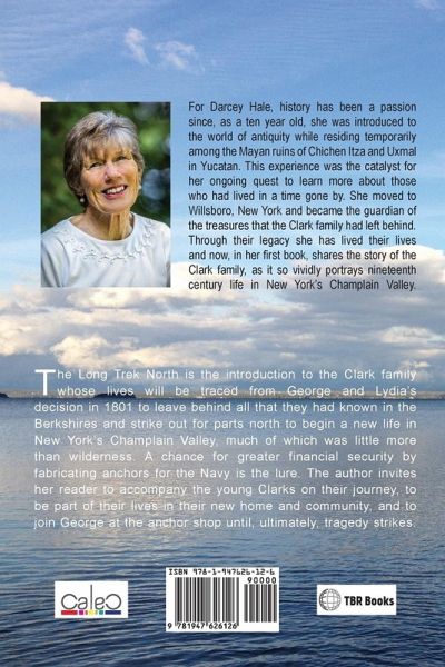 The author invites her reader to come with her on a journey into the past. It begins in the Connecticut Berkshires in 1801 and transports us north with George and Lydia who set forth to Willsborough, New York and, ultimately establish a family Clark legacy. The lure was an opportunity to better their lives financially and in every way. We experience the emotions they felt as they prepared to leave behind all that they had ever known and participate in their preparations for their long journey over terrain and under circumstances that were totally unknown to them. We too are on the wagon carrying Lydia and her four offspring over bumps along mere tracks and, sometimes a real road, while George rides alongside as the ultimate protector. We join them in their hastily prepared meals along the route and share their fears of nights so exposed. We step onto the sail ferry at Charlotte filled with trepidation as we stare at the vast expanse of water that lies before us and finally step gingerly onto the warm sand as they reach New York at last. We feel their fears when plunged into what they had termed "wilderness". Filled with excitement and a bit of trepidation we move toward Willsborough and, much to our delight and surprise, we are greeted warmly as we approach the doorway of our new home. We are certain that life will be good and that this "wilderness is not to be feared". George takes us into the Iron Shop where we see he and his cohorts crafting huge anchors for the newly created ocean going vessels of the US Navy and then tells us how these get to their final destination. Through it all we become part of their lives and we develop our own reactions to who these early Clarks really are, reactions that can become immensely personal. In the end, we are drawn into the final drama of the series, filled with anguish and concern. What will happen next?