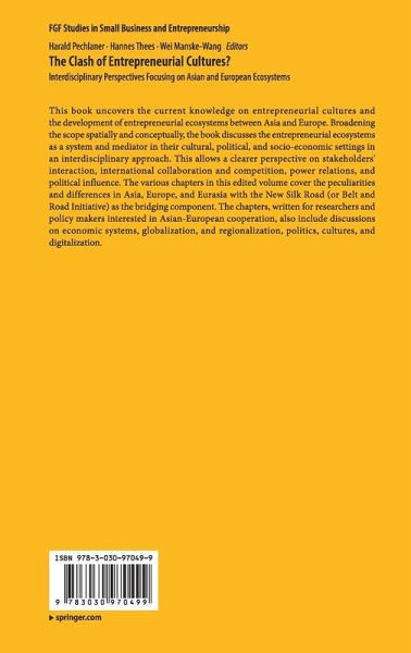 This book uncovers the current knowledge on entrepreneurial cultures and the development of entrepreneurial ecosystems between Asia and Europe. Broadening the scope spatially and conceptually, the book discusses the entrepreneurial ecosystems as a system and mediator in their cultural, political, and socio-economic settings in an interdisciplinary approach. This allows a clearer perspective on stakeholders' interaction, international collaboration and competition, power relations, and political influence. The various chapters in this edited volume cover the peculiarities and differences in Asia, Europe, and Eurasia with the New Silk Road (or Belt and Road Initiative) as the bridging component. The chapters, written for researchers and policy makers interested in Asian-European cooperation, also include discussions on economic systems, globalization, and regionalization, politics, cultures, and digitalization.