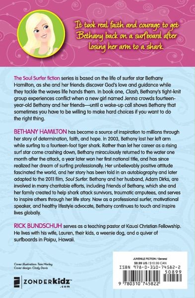 It took real faith and courage to get Bethany back on a surfboard after losing her arm to a shark. The Soul Surfer fiction series is based on the life of surfer star Bethany Hamilton, as she and her friends discover God's love and guidance as they tackle the waves life hands them. In book one, Clash, Bethany's tight-knit group experiences conflict when a new girl named Jenna crowds fourteen-year-old Bethany and her friends--until a wake-up call shows Bethany that sometimes you have to be willing to make hard choices if you want to do the right thing.