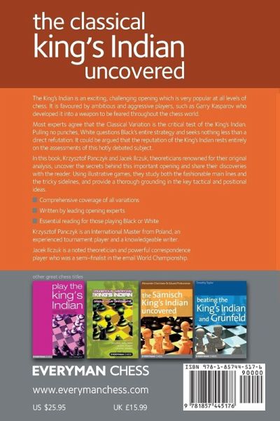 Most experts agree that the Classical Variation is the critical test of the King's Indian. Pulling no punches, White questions Black's entire strategy and seeks nothing less than a direct refutation; it could be said that the reputation of the King's Indian rests entirely on the assessments of this hotly debated subject. In this book, Krzysztof Panczyk and Jacek Ilczuk uncover the secrets behind this contentious opening and share their discoveries with the reader. They study both the fashionable main lines and the tricky sidelines, and provide a thorough grounding in the key tactical and positional ideas for both sides.