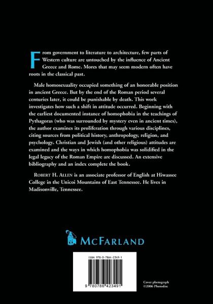 From government to literature to architecture, few fields in western culture are untouched by the influence of Ancient Greece and Rome. Even mores that may seem exclusively modern often have roots in the classical past. This book takes an in-depth look at the ancient roots of homophobia, including its Pythagorean origins and its eventual spread throughout the Roman Empire and, consequently, the rest of the world. Originally, male homosexuality occupied something of an honorable position in ancient Greece. By the end of the Roman period several centuries later, this attitude had changed so radically that to be found guilty of homosexual actions was punishable by death. This work investigates how such a shift occurred and traces the various cultural forces that brought about almost universal homophobia throughout western societies. Beginning with the earliest documented instance of homophobia in the teachings of Pythagoras (who was surrounded by mystery even in ancient times), the author examines its proliferation through various disciplines, citing sources from political history, anthropology, religion, and psychology as well as the analysis of ancient texts. Through extensive historical research, he follows the concept from Greece to Macedonia and finally to Rome, examining relevant religious attitudes including those of Christianity and Judaism. Finally, he discusses the ways in which homophobia was solidified in the legal legacy of the Roman Empire. An extensive bibliography provides additional resources regarding classical influence on modern culture.