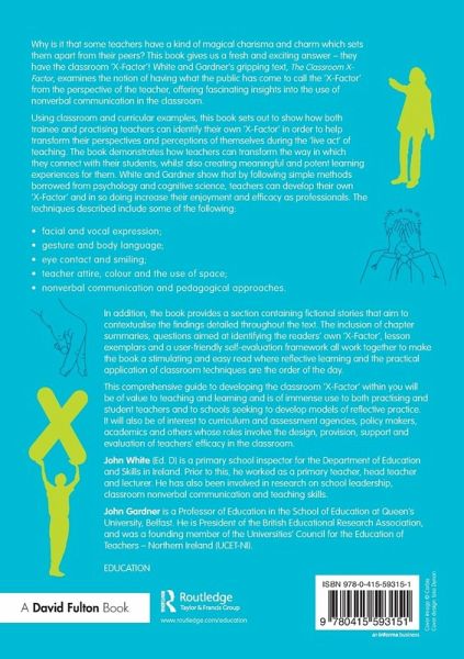 The book demonstrates how teachers can transform how they connect with their students, whilst also creating meaningful and potent learning experiences for themselves. White and Gardner show that by following simple methods borrowed from psychology and cognitive science teachers can develop their own â X-Factorâ and in so doing increase their enjoyment and efficacy as professionals.