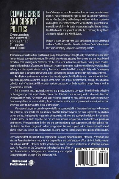 There is only one earth and our world is undergoing dramatic changes brought on by the climate crisis and other human-induced ecological disruptions. The world's top scientists studying these threats and the forces behind them have been warning us for decades to end the use of fossil fuels or face catastrophic consequences. Countering the still small voices of science, our democratic system of government has been rigged largely by the fossil fuel industry and other special interests leaving America hoodwinked and held hostage to dirty fuels. Campaigning politicians claim to be working for us when in fact they are being paid and controlled by fierce special interests. As a lifetime environmental insider in the struggle against fossil fuel interests I have written this book to better equip Americans for the struggle ahead. Since 1978, I spent my career in the struggle to end carbon pollution in all of its forms and I have taken a unique perspective on the far-reaching corrupt forces at work in government at all levels. This is an urgent message aimed at parents and grandparents who care about their children forced to live on the ragged edge of an unprecedented climate crisis. This book is also for young leaders who understand that we must act now with a "Green New Deal" scale response. Together, we must confront and overcome the many toxic money influences, reverse a failing democracy and retake the reins of government to enact policies that secure our shared future and the future of life on earth. We must work together. Learn how powerful forces operating behind the curtain have been orchestrating our system for their benefit and our ultimate downfall. Discover ways we can work together to fix a broken system and reclaim leadership to stem the climate crisis and avoid the ecological meltdown that threatens a million species on Earth. Together, we can and must reclaim our government and restore our precarious environment. We must confront the lies and end gerrymandering, voter suppression and other political manipulations that thwart progress to a clean energy future. We must respond to the climate crisis with a bold plan to convert to a carbon-free energy future. By acting now, we can still change the outcome of life on earth.