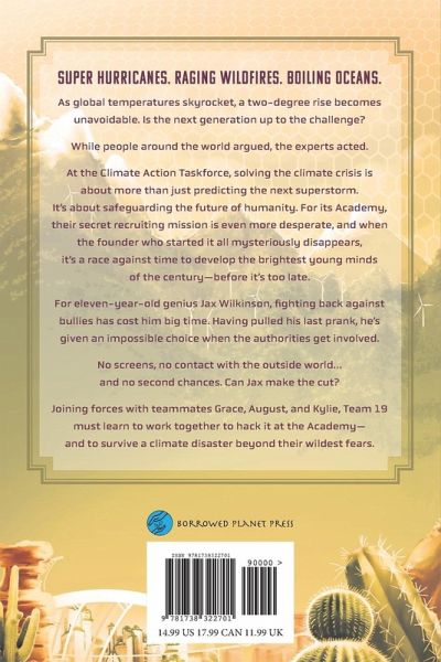 Super Hurricanes. Raging wildfires. Boiling oceans. As global temperatures skyrocket, a two-degree rise becomes unavoidable. Is the next generation up to the challenge? While people around the world argued, the experts acted. At the Climate Action Taskforce, solving the climate crisis is about more than just predicting the next superstorm. It's about safeguarding the future of humanity. For its Academy, their secret mission is even more desperate. When the founder who started it all mysteriously disappears, it's a race against time to develop the brightest young minds of the century -before it's too late. For eleven-year-old genius Jax Wilkinson, fighting back against bullies has cost him big time. Having pulled his last prank, he's given an impossible choice when the authorities get involved. No screens, no contact with the outside world... and no second chances. Can Jax make the cut? Joining forces with teammates Grace, August, and Kylie, Team 19 must learn to work together to hack it at the Academy- and to survive a catastrophe beyond their wildest fears.