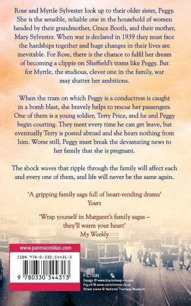 The Clippie Girls is a compelling story of love, loss and heartbreak in the Second World War, by the author of the Fleethaven Trilogy, Margaret Dickinson. Rose and Myrtle Sylvester look up to their older sister, Peggy. She is the sensible, reliable one in the household of women headed by their grandmother, Grace Booth, and their mother, Mary Sylvester. When war is declared in 1939 they must face the hardships together and huge changes in their lives are inevitable. For Rose, there is the chance to fulfil her dream of becoming a clippie on Sheffield's trams like Peggy. But for Myrtle, the studious, clever one in the family, war may shatter her ambitions. When the tram on which Peggy is a conductress is caught in a bomb blast, she bravely helps to rescue her passengers. One of them is a young soldier, Terry Price, and he and Peggy begin courting. They meet every time he can get leave, but eventually Terry is posted abroad and she hears nothing from him. Worse still, Peggy must break the devastating news to her family that she is pregnant. The shock waves that ripple through the family will affect each and every one of them and life will never be the same again.