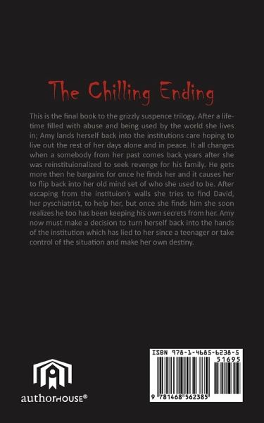 This is the final book to the grizzly suspence trilogy. After a life-time filled with abuse and being used by the world she lives in; Amy lands herself back into the institutions care hoping to live out the rest of her days alone and in peace. It all changes when a somebody from her past comes back years after she was reinstituionalized to seek revenge for his family. He gets more then he bargains for once he finds her and it causes her to flip back into her old mind set of who she used to be. After escaping from the instituion's walls she tries to find David, her pyschiatrist, to help her, but once she finds him she soon realizes he too has been keeping his own secrets from her. Amy now must make a decision to turn herself back into the hands of the institution which has lied to her since a teenager or take control of the situation and make her own destiny.