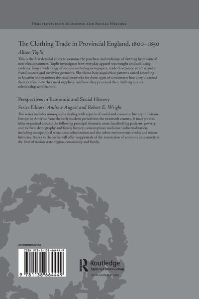 This detailed study is the first exploration of rural consumption of clothing in early nineteenth-century Britain. Drawing on evidence from a range of sources including newspapers, trade directories, court records, visual sources and surviving garments, Toplis investigates how the apparel of the mass of the British population was acquired.