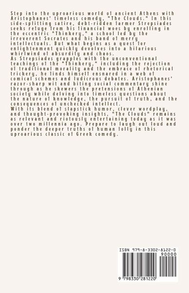 "The Clouds" is a timeless Greek comedy written by Aristophanes, renowned for its sharp wit, satire, and philosophical inquiry. Set in ancient Athens, this comedic masterpiece follows the misadventures of Strepsiades, a debt-ridden farmer desperate to evade his financial troubles. Fueled by the promise of enlightenment and the power to argue his way out of debt, Strepsiades enrolls in the "Thinkery," an unconventional school led by the eccentric Socrates and his band of bumbling intellectuals. As Strepsiades navigates the absurd teachings of the "Thinkery," including the rejection of traditional morality and the promotion of rhetorical trickery, he finds himself entangled in a series of ludicrous schemes and outlandish debates. Aristophanes expertly weaves together elements of slapstick humor, biting social commentary, and philosophical exploration, offering a hilarious yet thought-provoking exploration of the clash between tradition and innovation, ignorance and enlightenment. Through uproarious dialogue and colorful characters, "The Clouds" lampoons the intellectual pretensions of Athenian society while raising timeless questions about the nature of education, the pursuit of knowledge, and the consequences of blindly following ideology. With its enduring relevance and irrepressible humor, "The Clouds" continues to captivate audiences and provoke laughter while challenging audiences to question their own beliefs and assumptions.