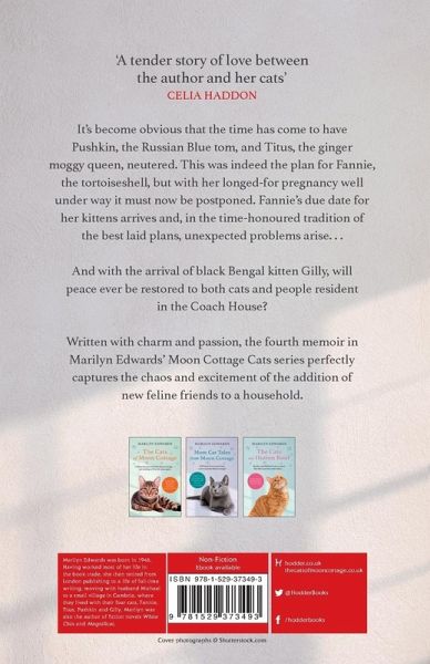 Marilyn Edwards was born in 1946 and lived her formative years in Yorkshire. She worked most of her life in the book trade, for publishers including Jonathan Cape, Allen & Unwin and Random House. After retiring from London publishing to a life of full-time writing, she moved with husband and fellow northerner Michael to a small village in Cumbria, where they lived with their four cats, Fannie, Titus, Pushkin and Gilly. The Moon Cottage cat series was originally published by Hodder between 2003-2008, to great critical acclaim from cat lovers including Jacqueline Wilson, Karin Slaughter and Celia Haddon. Marilyn was also the author of fiction novels White Chin and Magnificat. More information on Marilyn and her work can be found on www.thecatsofmooncottage.co.uk.