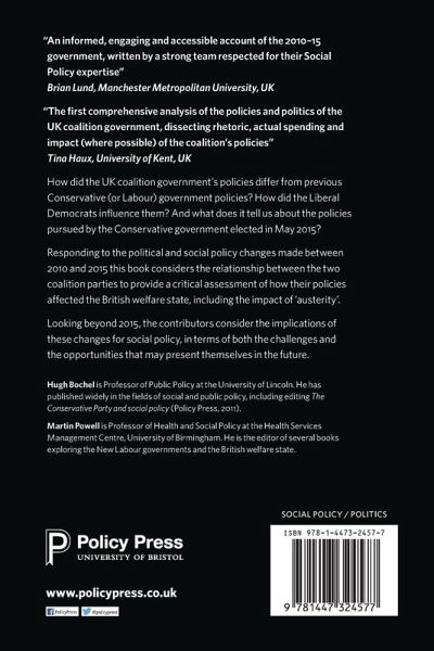 A wide-range of experts respond to the political and social policy changes made under the UK coalition government (2010-15) and provide a critical assessment of how their policies affected the British welfare state.