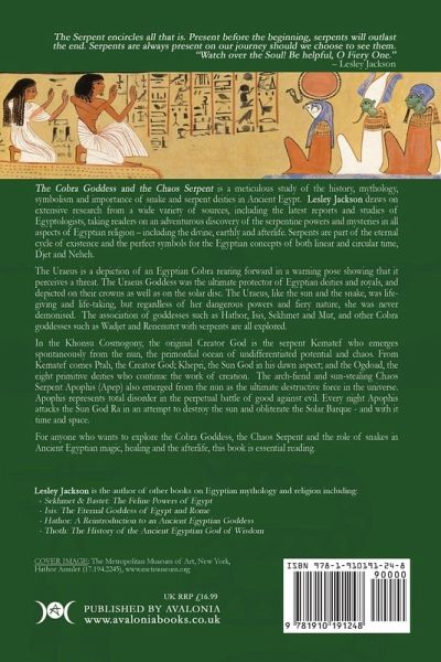 The Serpent encircles all that is. Present before the beginning, serpents will outlast the end. Serpents are always present on our journey should we choose to see them. "Watch over the Soul! Be helpful, O Fiery One." – Lesley Jackson The Cobra Goddess and the Chaos Serpent is a meticulous study of the history, mythology, symbolism and importance of snake and serpent deities in Ancient Egypt. Lesley Jackson draws on extensive research from a wide variety of sources, including the latest reports and studies of Egyptologists, taking readers on an adventurous discovery of the serpentine powers and mysteries in all aspects of Egyptian religion – including the divine, earthly and afterlife. Serpents are part of the eternal cycle of existence and the perfect symbols for the Egyptian concepts of both linear and circular time, Djet and Neheh. The Uraeus is a depiction of an Egyptian Cobra rearing forward in a warning pose showing that it perceives a threat. The Uraeus Goddess was the ultimate protector of Egyptian deities and royals, and depicted on their crowns as well as on the solar disc. The Uraeus, like the sun and the snake, was life-giving and life-taking, but regardless of her dangerous powers and fiery nature, she was never demonised. The association of goddesses such as Hathor, Isis, Sekhmet and Mut, and other Cobra Goddesses such as Wadjet and Renenutet with serpents are all explored. In the Khonsu Cosmogony, the original Creator God is the serpent Kematef who emerges spontaneously from the nun, the primordial ocean of undifferentiated potential and chaos. From Kematef comes Ptah, the Creator God; Khepri, the Sun God in his dawn aspect; and the Ogdoad, the eight primitive deities who continue the work of creation. The arch-fiend and sun-stealing Chaos Serpent Apophis (Apep) also emerged from the nun as the ultimate destructive force in the universe. Apophis represents total disorder in the perpetual battle of good against evil. Every night Apophis attacks the Sun God Ra in an attempt to destroy the sun and obliterate the Solar Barque - and with it time and space. For anyone who wants to explore the Cobra Goddess, the Chaos Serpent or the role of snakes in Ancient Egyptian magic, healing and the afterlife, this book is essential reading. "‘The beginning is light, the end is Unified Darkness.’ As well as being a symbol of time the snake can also be associated with the cosmic collapse of the universe which will bring about the end or suspension of time. One suggestion is that the imagery came from the way the snake periodically sheds its skin. Nothing created will survive forever but the creative principle can endure" – author Lesley Jackson