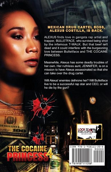 Mexican drug cartel boss, ALEXUS COSTILLA, is back. After suffering critical injuries in an Indianapolis hotel bombing, Alexus comes out of a coma only to find that the man she loves and cherishes, rap mega star BLAKE "BULLETFACE" KING, has been cheating on her left and right with his ex girlfriends and a new Atlanta stripper who goes by the name BADDIE BARBIE. Alexus also learns that the boss of a rival cartel has gone after her mother and children during her hospitalization. While recovering from her injuries and hunting down the rival cartel boss, Alexus is faced with an even bigger problem. She must get her husband back and keep his side chicks away, and she will do it by any means necessary, including murder. Forces align to test just how gangsta THE COCAINE PRINCESS is, and those forces are about to find out that this little pretty drug cartel boss is not to be trifled with. Because when it comes to beauty, guile and viciousness, Alexus is second to no one.