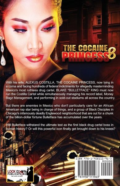 With his wife, ALEXUS COSTILLA, THE COCAINE PRINCESS, now lying in a coma and facing hundreds of federal indictments for allegedly masterminding Mexico's most ruthless drug cartel, BLAKE "BULLETFACE" KING must now run the Costilla Cartel while simultaneously managing his record label, Money Bagz Management, and performing in sold-out stadiums all across the country. But there are enemies in Mexico who don't particularly care for an African American rap star being in charge of things, and a group of Black Disciples in Chicago's infamously deadly Englewood neighborhood that are out for a chunk of the billion-dollar fortune Bulletface has accumulated over the years. Will Bulletface withstand the ultimate test as the first black drug cartel boss in human history? Or will this powerful icon finally get brought down to his knees?