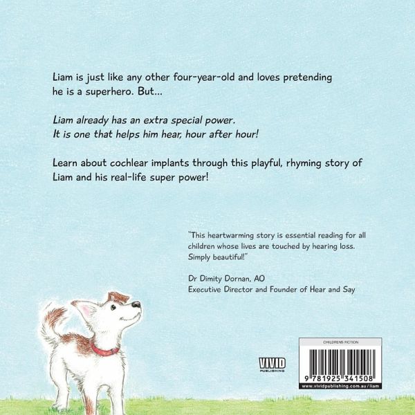 Liam is just like any other four-year-old and loves pretending he is a superhero. But... Liam already has an extra special power. It is one that helps him hear hour after hour! Learn about cochlear implants through this playful, rhyming story of Liam and his real-life super power! . . . . . . . . "This heartwarming story is essential reading for all children whose lives are touched by hearing loss. Simply beautiful!" Dr Dimity Dornan, AO Executive Director and Founder of Hear and Say "Liam the Superhero is undoubtedly a very reassuring and inspirational book" The Children's Book Council of Australia