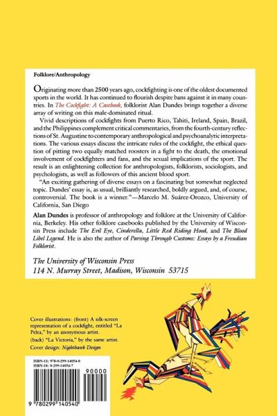 Originating more than 2500 years ago, cockfighting is one of the oldest documented sports in the world. It has continued to flourish despite bans against it in many countries. Folklorist Alan Dundes brings together a diverse array of writing on this male-dominated ritual. Vivid descriptions of cockfights from Puerto Rico, Tahiti, Ireland, Spain, Brazil, and the Philippines complement critical commentaries, from the 4th-century reflections of St Augustine to contemporary anthropological and psychoanalytic interpretations. Various essays discuss the intricate rules of the cockfight; the ethical question of pitting two equally matched roosters in a fight to the death; the emotional involvement of cockfighters and fans; and the sexual implications of the sport. The result is a collection for anthropologists, folklorists, sociologists, and psychologists, as well as followers of this ancient blood sport.