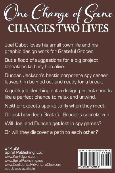 One Change of Scene Changes Two Lives Joel Cabot loves his small town life and his graphic design work for Grateful Grocer. But a flood of suggestions for a big project threatens to bury him alive. Duncan Jackson's hectic corporate spy career leaves him burned out and ready for a break. A quick job sleuthing out a design project sounds like a perfect chance to relax and unwind. Neither expects sparks to fly when they meet. Or just how deep Grateful Grocer's secrets run. Will Joel and Duncan get lost in spy games? Or will they discover a path to each other? An Unexpected Spark Changes…mehr