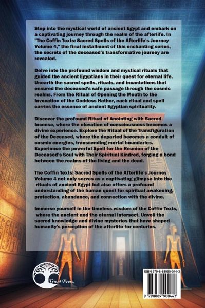 Step into the mystical world of ancient Egypt and embark on a captivating journey through the realm of the afterlife. In "The Coffin Texts: Sacred Spells of the Afterlife's Journey Volume 4," the final installment of this enchanting series, the secrets of the deceased's transformative journey are revealed. Delve into the profound wisdom and mystical rituals that guided the ancient Egyptians in their quest for eternal life. Unearth the sacred spells, rituals, and incantations that ensured the deceased's safe passage through the cosmic realms. From the Ritual of Opening the Mouth to the Invocation of the Goddess Hathor, each ritual and spell carries the essence of ancient Egyptian spirituality. Discover the profound Ritual of Anointing with Sacred Incense, where the elevation of consciousness becomes a divine experience. Explore the Ritual of the Transfiguration of the Deceased, where the departed becomes a conduit of cosmic energies, transcending mortal boundaries. Experience the powerful Spell for the Reunion of the Deceased's Soul with Their Spiritual Kindred, forging a bond between the realms of the living and the dead. The Coffin Texts: Sacred Spells of the Afterlife's Journey Volume 4 not only serves as a captivating glimpse into the rituals of ancient Egypt but also offers a profound understanding of the human quest for spiritual awakening, protection, abundance, and connection with the divine. Immerse yourself in the timeless wisdom of the Coffin Texts, where the ancient and the eternal intersect. Unveil the sacred knowledge and divine mysteries that have shaped humanity's perception of the afterlife for centuries. Prepare to embark on a transformative journey of the soul as you traverse the ancient Egyptian rites and incantations in this final volume of the Coffin Texts series. Let the words of the ancients guide you toward a deeper understanding of life, death, and the profound mysteries that lie beyond.