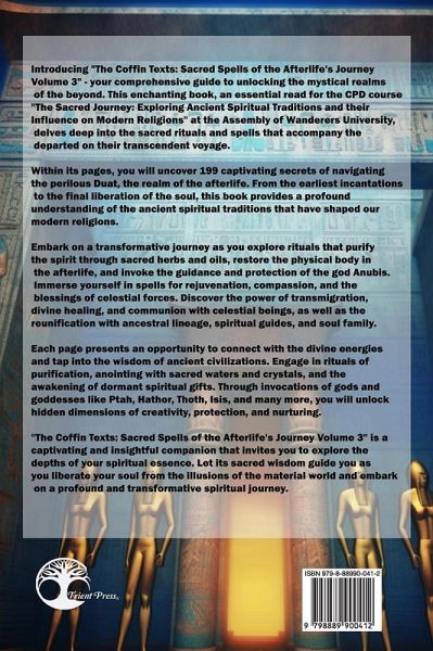 Introducing "The Coffin Texts: Sacred Spells of the Afterlife's Journey Volume 3" - your comprehensive guide to unlocking the mystical realms of the beyond. This enchanting book, an essential read for the CPD course "The Sacred Journey: Exploring Ancient Spiritual Traditions and their Influence on Modern Religions" at the Assembly of Wanderers University, delves deep into the sacred rituals and spells that accompany the departed on their transcendent voyage. Within its pages, you will uncover 199 captivating secrets of navigating the perilous Duat, the realm of the afterlife. From the earliest incantations to the final liberation of the soul, this book provides a profound understanding of the ancient spiritual traditions that have shaped our modern religions. Embark on a transformative journey as you explore rituals that purify the spirit through sacred herbs and oils, restore the physical body in the afterlife, and invoke the guidance and protection of the god Anubis. Immerse yourself in spells for rejuvenation, compassion, and the blessings of celestial forces. Discover the power of transmigration, divine healing, and communion with celestial beings, as well as the reunification with ancestral lineage, spiritual guides, and soul family. Each page presents an opportunity to connect with the divine energies and tap into the wisdom of ancient civilizations. Engage in rituals of purification, anointing with sacred waters and crystals, and the awakening of dormant spiritual gifts. Through invocations of gods and goddesses like Ptah, Hathor, Thoth, Isis, and many more, you will unlock hidden dimensions of creativity, protection, and nurturing. "The Coffin Texts: Sacred Spells of the Afterlife's Journey Volume 3" is a captivating and insightful companion that invites you to explore the depths of your spiritual essence. Let its sacred wisdom guide you as you liberate your soul from the illusions of the material world and embark on a profound and transformative spiritual journey.