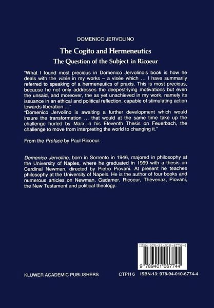 by Paul Ricoeur It is already a piece of good fortune to find oneself understood by a reader who is at once demanding and benevolent. It is an even greater fortune to be better understood by another than by one's own self. In effect, when I look back, I am rather struck by the discontinuity among my works, each of which takes on a specific problem and apparently has little more in common with its predecessor than the fact of having left an overflow of unanswered questions behind it as a residue. On the contrary, Domenico Jervolino's interpretation of my works, which extend over more than forty years, stresses their coherence, in spite of the gap in time between my present, soon to be issued work--Temps et Recit--and my first, Philosophie de la Volonte: Ie Volontaire et l'lnvolontaire. Our friend finds the principle of coherence first of all in the recurrence of a problem: the destiny of the idea of subjectivity, caught in the cross-fire between Nietzsche and Heidegger on one sideand semiology, psychoanalysis and the critique of ideology on the other. He finds it likewise in the insistence on a method: the mediating role played by interpretation, mainly of texts, with regard to reflexion on self.